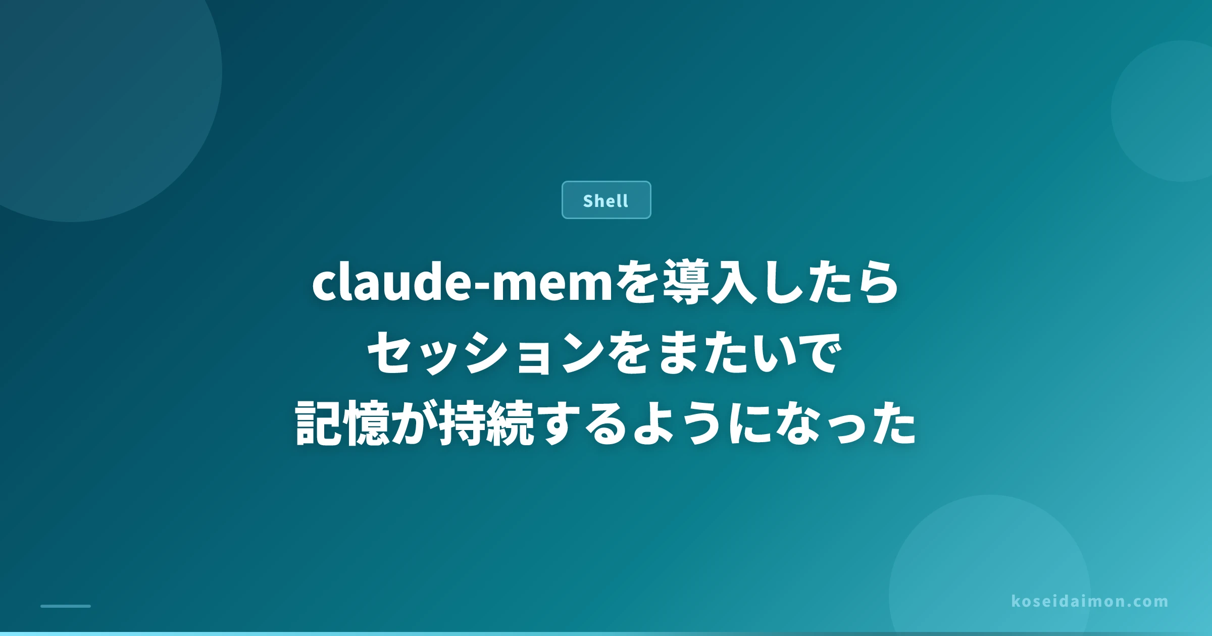 - claude-mem はセッション間の記憶を自動的に維持してくれる Claude Code プラグイン